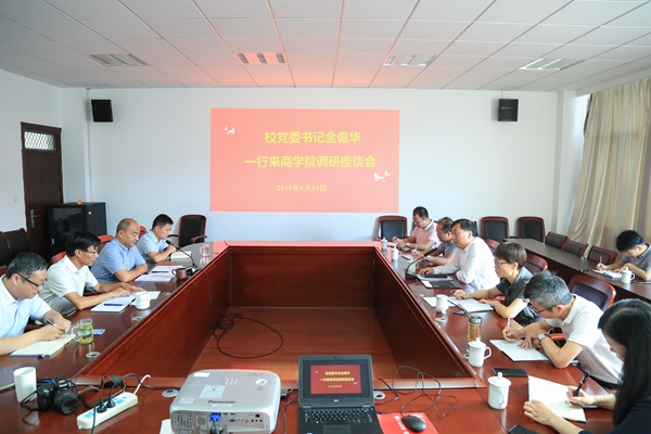金佩华与商学院领导班子进行座谈时强调,解决好制约学院发展的瓶颈问题,关键在于找到符合学校、学院实际的解决方案,做好师资队伍建设和人才引进工作。学院要在发展上取得成绩,离不开学院自身努力以及学校的支持。金佩华希望商学院能进一步将学院党建工作做精做实,将党建工作与学科和专业建设相结合,三位一体,融合发展;将党建工作与人才培养相结合,不断完善人才培养机制。